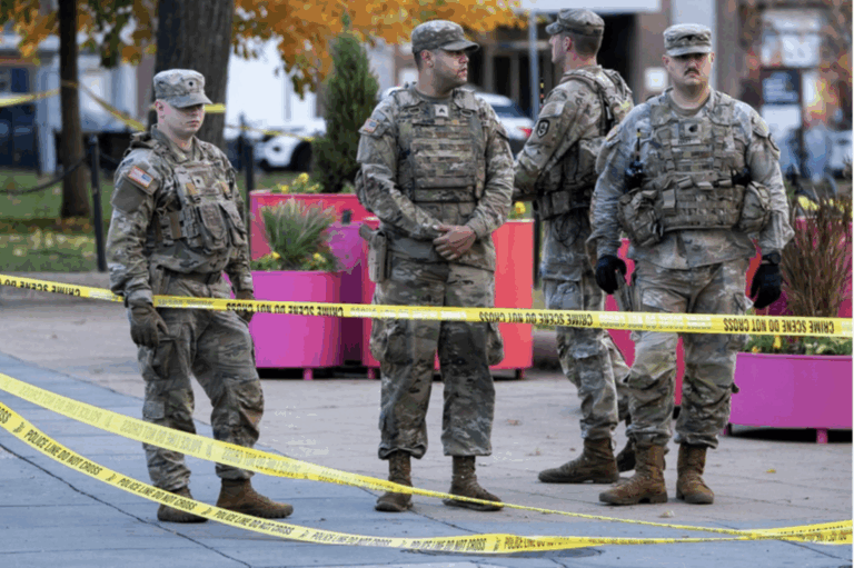 Published 28/11/2025 14:23 | Edited 11/28/2025 15:06 National Guard soldiers stand together behind yellow...