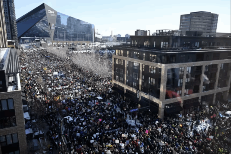 Published 01/24/2026 12:19 | Edited 01/24/2026 12:22 Protesters participate in a protest and march...