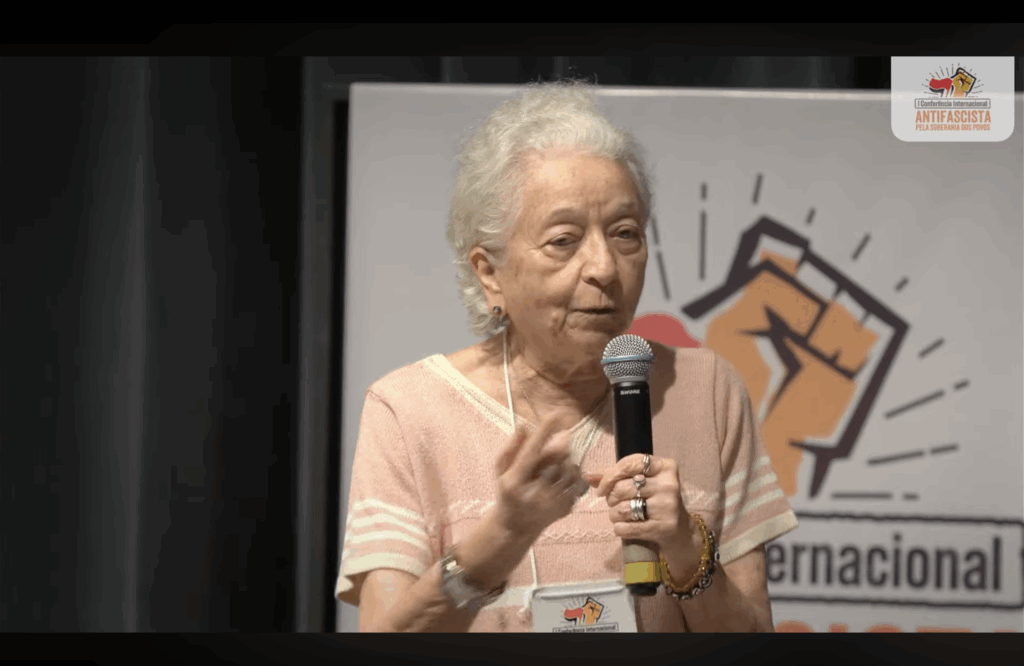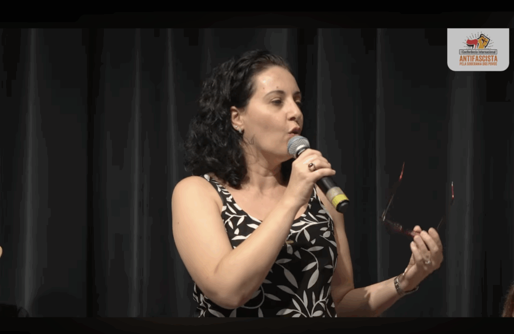 In her intervention, Ana Maria Prestes, Secretary of International Relations at PCdoB, highlighted the historical urgency of the anti-fascist organization. “In the last two years, this is the third anti-fascist conference in which I have participated”, he stated, citing Caracas (2024), Moscow and Porto Alegre (2026).