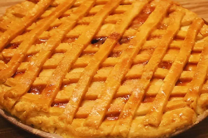 • Bake the pie in the preheated oven for about 40-50 minutes, or until the pastry is golden and the apple filling is bubbling.