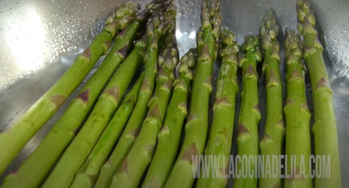 - Commencez par bien laver les asperges vertes et laissez-les égoutter complètement;