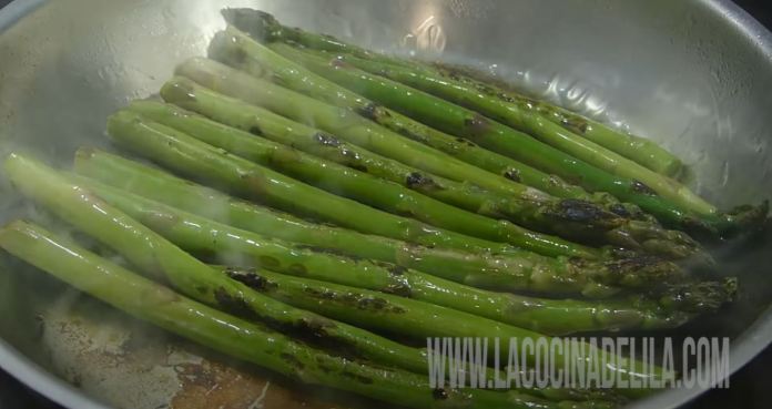 - Lorsque l’huile est chaude, ajouter les asperges;