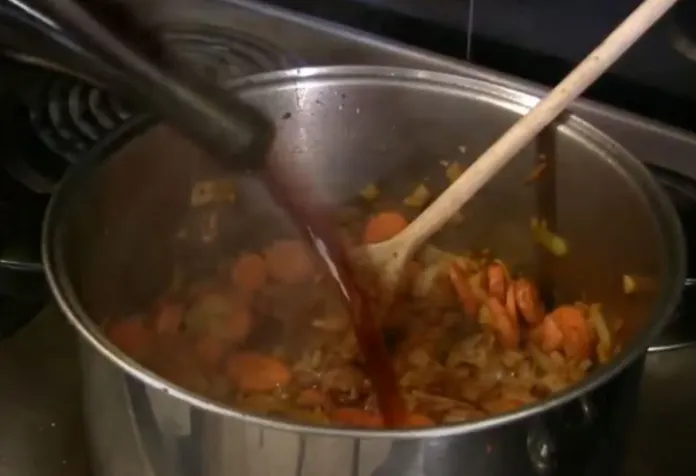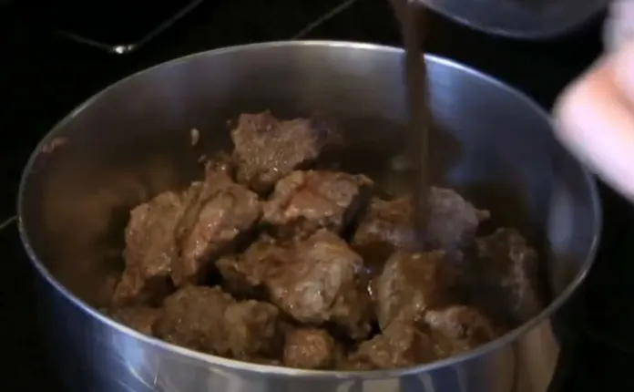 Versez ensuite le liquide de déglaçage sur le bœuf.