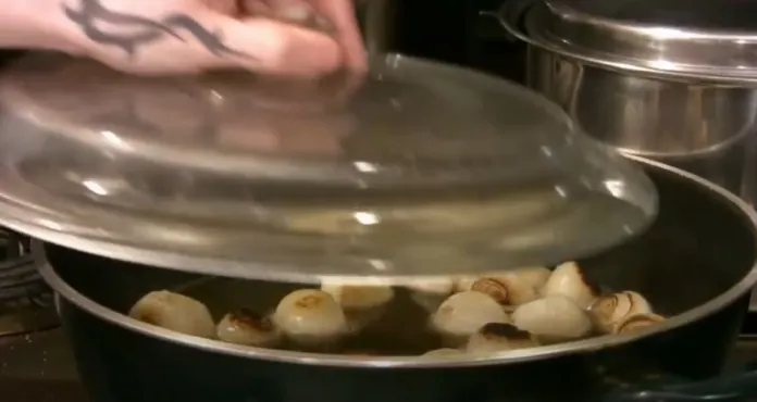 - Faire revenir légèrement les oignons bouillants avec 1 cuillère à soupe de beurre dans la casserole.