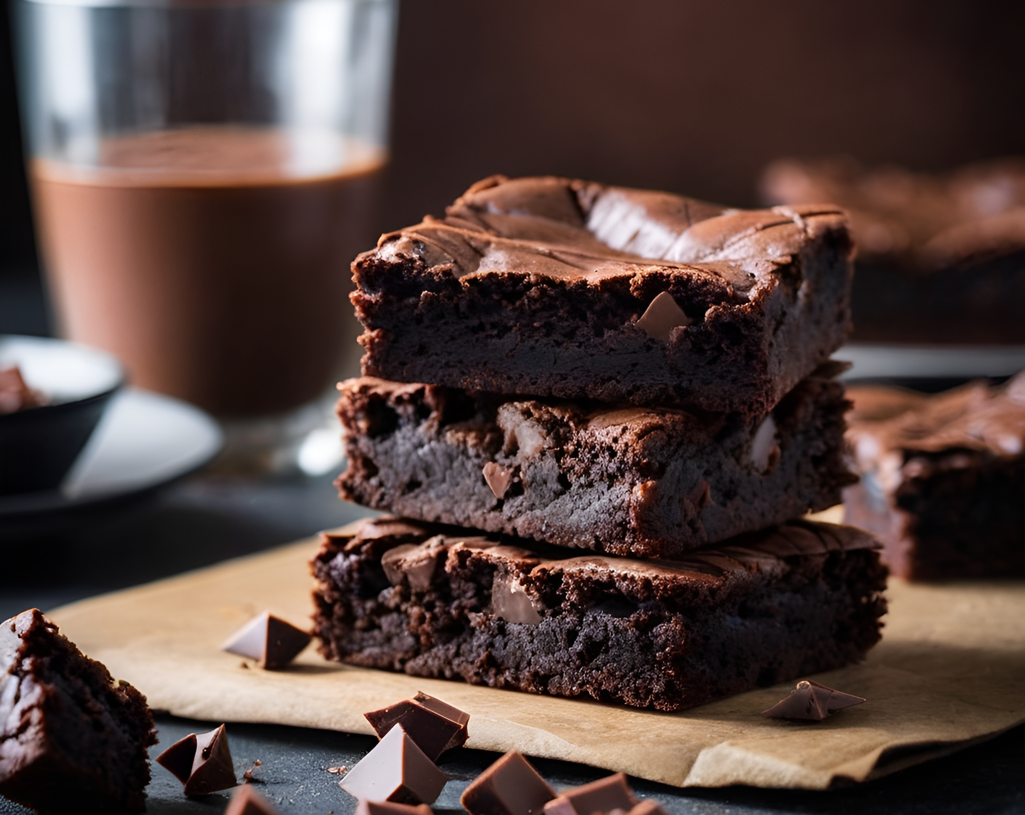 Les brownies au chocolat sont un dessert ou une collation populaire composé de quelques ingrédients clés, principalement du chocolat, du beurre, du sucre, des œufs et de la farine. Ils sont connus pour leur texture dense et fondante et leur riche saveur de chocolat.