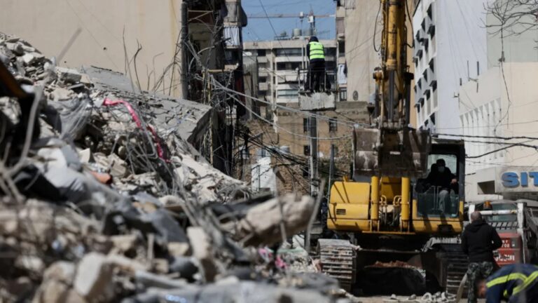 Published 03/18/2026 13:00 | Edited 03/18/2026 15:42 Excavator plows through rubble after bombings that...
