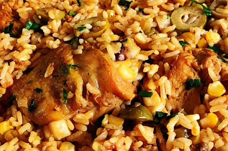 Sauté for a few minutes until the vegetables are lightly cooked. - Add the rice to the pan and stir well so that it absorbs the flavors of the chicken and vegetables.