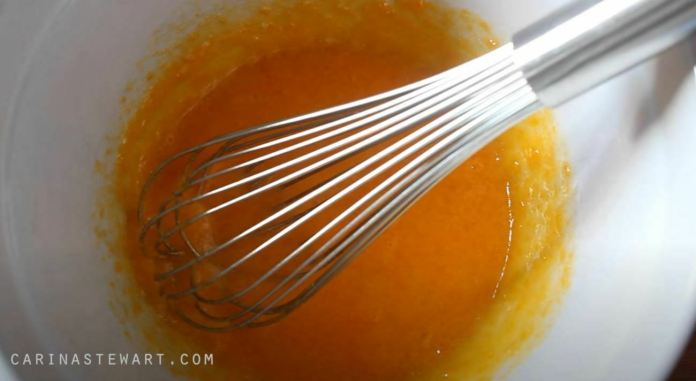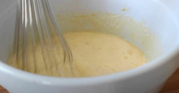 - Quand il arrive à ce point, retirez-le rapidement du feu et commencez très lentement à l’ajouter aux œufs et au sucre tout en fouettant.