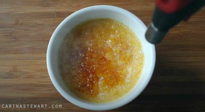 - Il est beaucoup plus simple d’utiliser un chalumeau ou un chalumeau de cuisine pour caraméliser le sucre, mais si vous n’en avez pas, vous pouvez aussi le mettre au four.