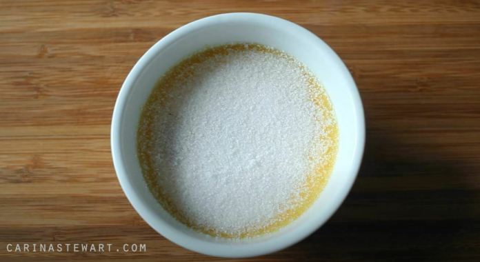 - Mesurez un peu de sucre dans un petit bol, environ une demi-cuillère à soupe par crème brûlée.