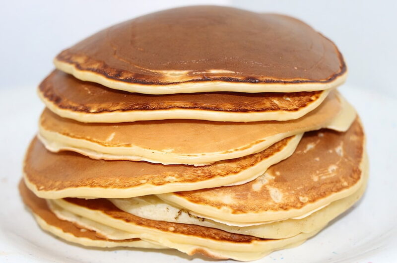 - Servir les pancakes chauds avec du beurre et du sirop d’érable.