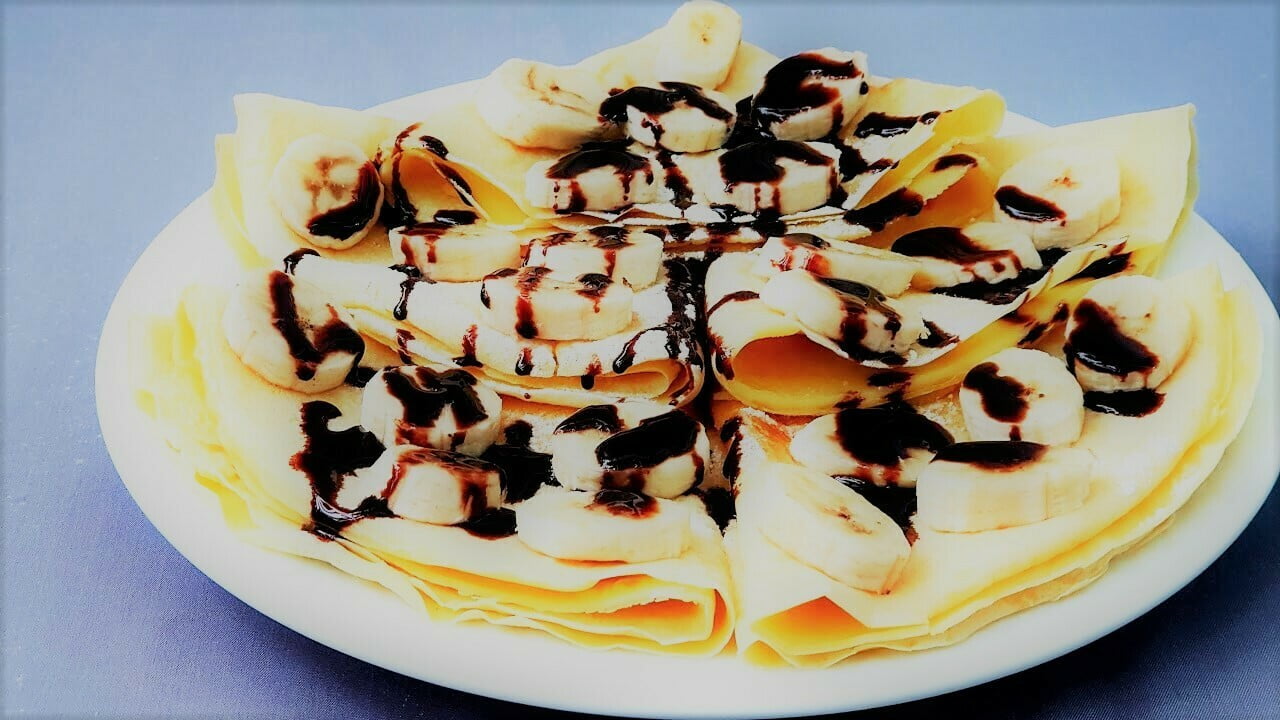 La crêpe, un mot qui vient du français crêpe, dérivé du latin crispus, qui signifie bouclé, est un type de crêpe à base de farine de blé, de lait et d’œufs. La pâte est préparée de telle manière qu’elle puisse former une fine couche au fond d’une casserole juste badigeonnée de beurre ou d’une autre matière grasse. La crêpe est généralement consommée après avoir été enrichie d’une garniture, qui peut être sucrée ou salée.