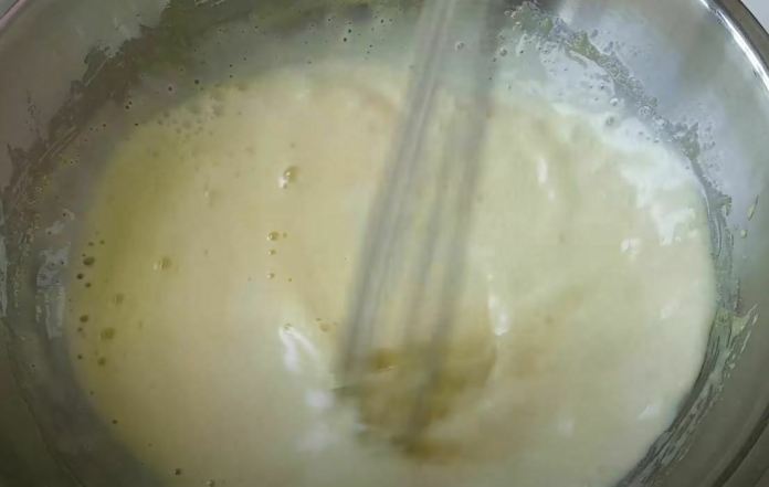 • Ajouter 1 jaune, 2 cuillères à soupe de sucre (20 g), 3/5 cuillères à café de sel (3 g);
