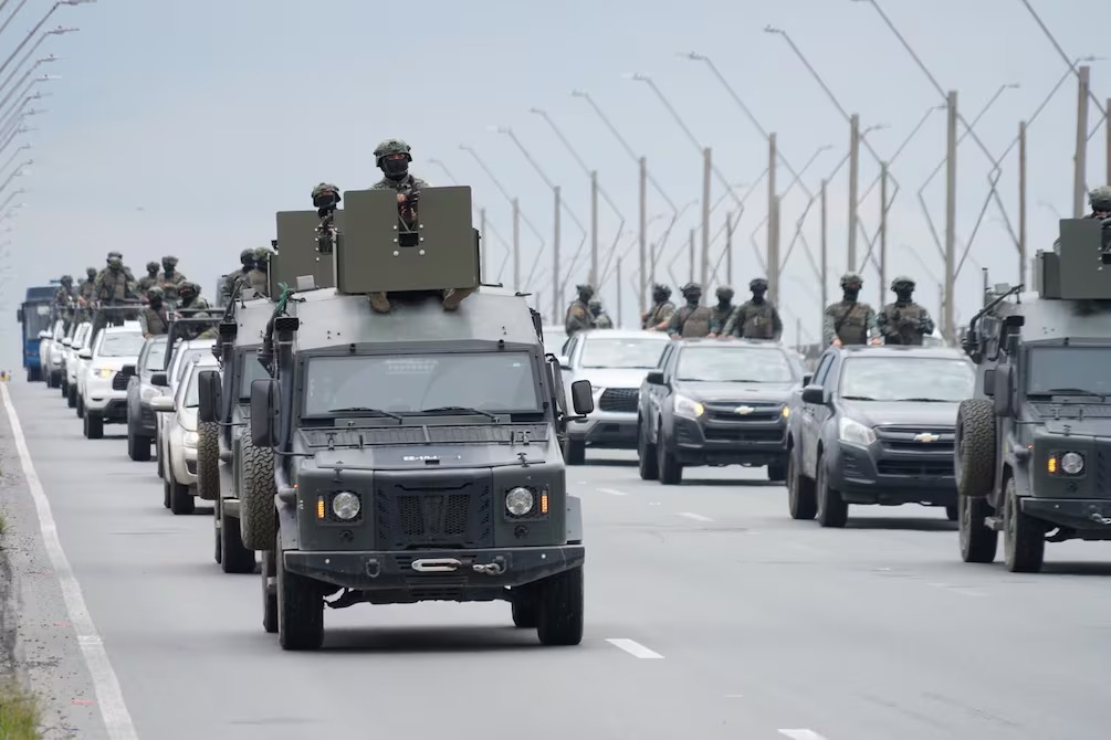 Ecuadorian military personnel participate in a security operation during the mobilization of troops and military vehicles in provinces under curfew in the country. Photo: Reproduction
