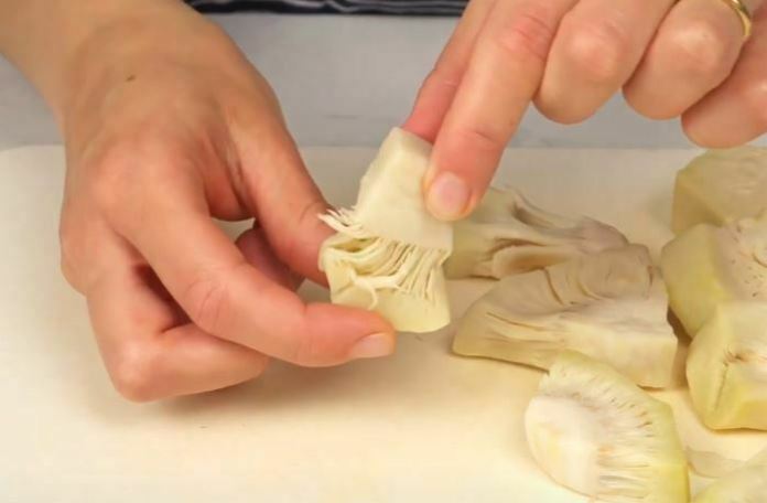 Ceci est particulièrement important si vous avez acheté du jacquier en conserve, car l’eau en conserve est un peu acide et vous devez d’abord la rincer.