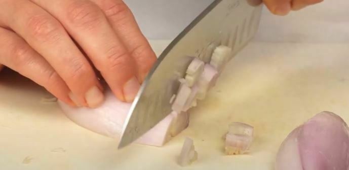- Ajoutez ensuite les échalotes et une gousse d’ail hachée.