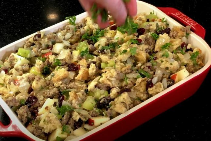 Découvrez une excellente recette de farce à la saucisse à la sauge avec pommes et canneberges!