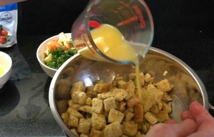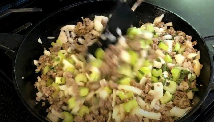 - Remuez-le, puis commencez à l’ajouter au mélange à farce.