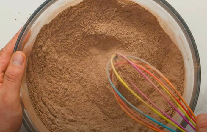 - Ensuite, ajoutez plus de poudre de cacao (on vous a dit que vous en auriez besoin de beaucoup) et fouettez à nouveau jusqu’à ce que le tout soit mélangé.