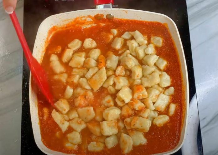 - Mélanger jusqu’à ce que la sauce enrobe les Gnocchis;