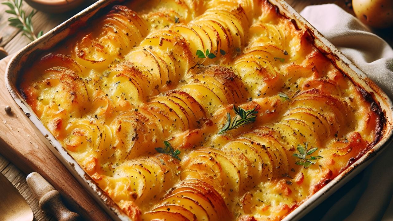 Les pommes de terre gratinées, également connues simplement sous le nom de « pommes de terre gratinées », sont un plat classique composé de pommes de terre tranchées finement recouvertes d’une sauce crémeuse et cuites au four jusqu’à ce qu’elles soient dorées et bouillonnantes. Le terme « gratiné » fait référence à une technique culinaire où un plat est garni de chapelure, de fromage ou de beurre puis doré sous le gril ou au four.