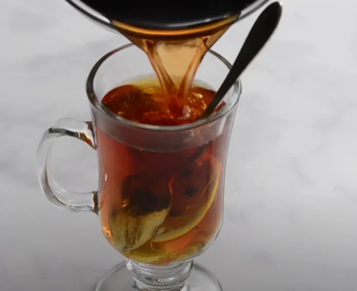 Assurez-vous de mettre une cuillère dans le verre avant d’ajouter le liquide chaud. - Verser le thé chaud à la cannelle.