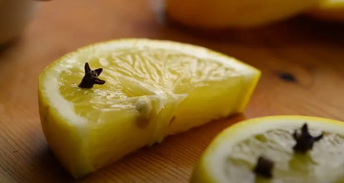 - Coupez-les en deux et insérez trois clous de girofle de chaque côté.