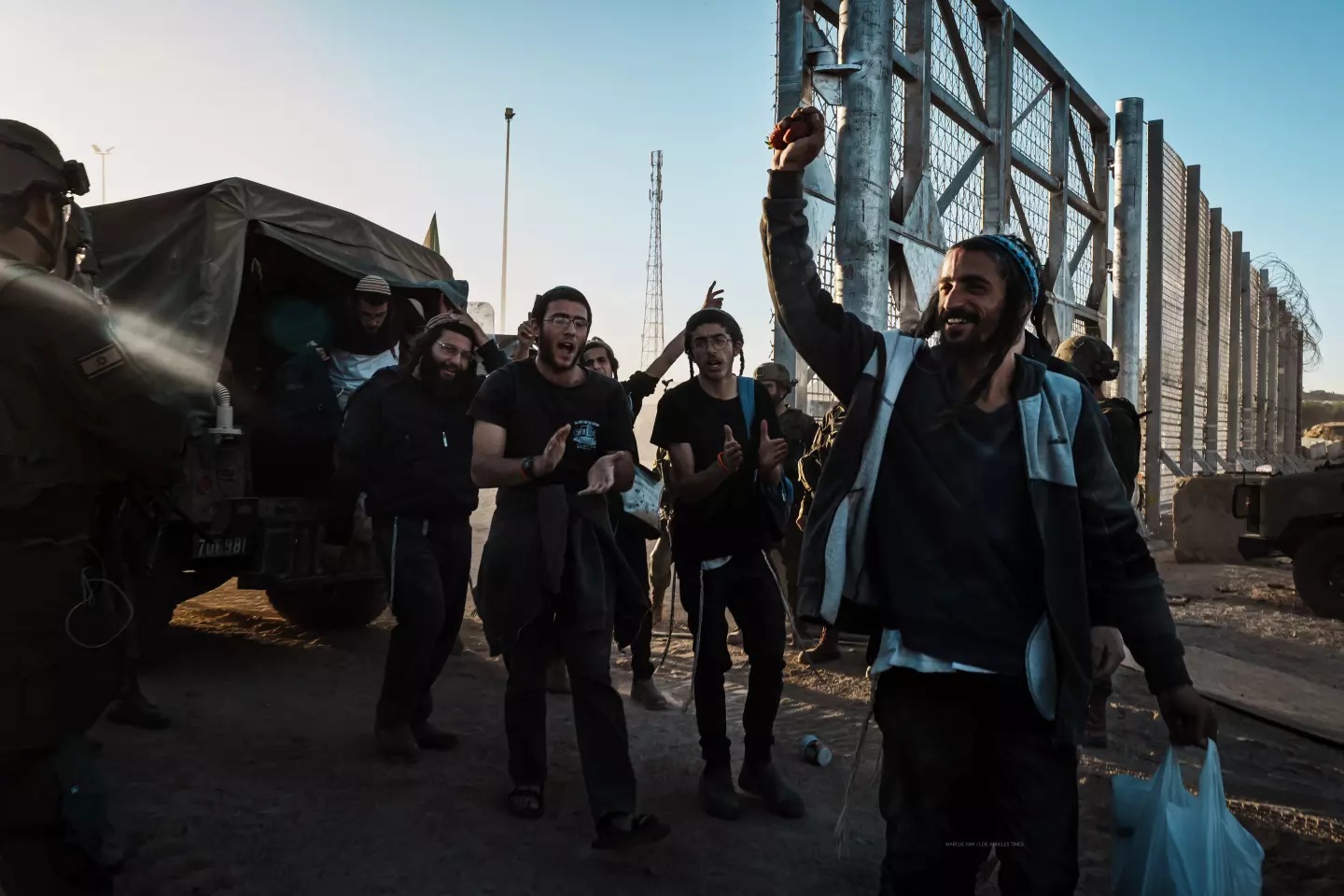 Israeli settlers celebrate before the military near the fence that separates the West Bank from Israel, amid the climbing of the attachment policy of occupied territories. Photo: Reproduction