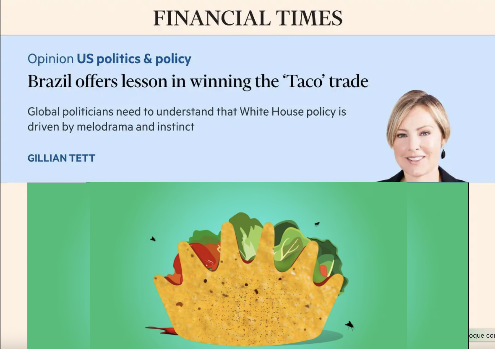FT columnist says Brazil offers lessons for winning the TACO negotiations. “Global politicians need to understand that White House diplomacy is driven by melodrama and instinct