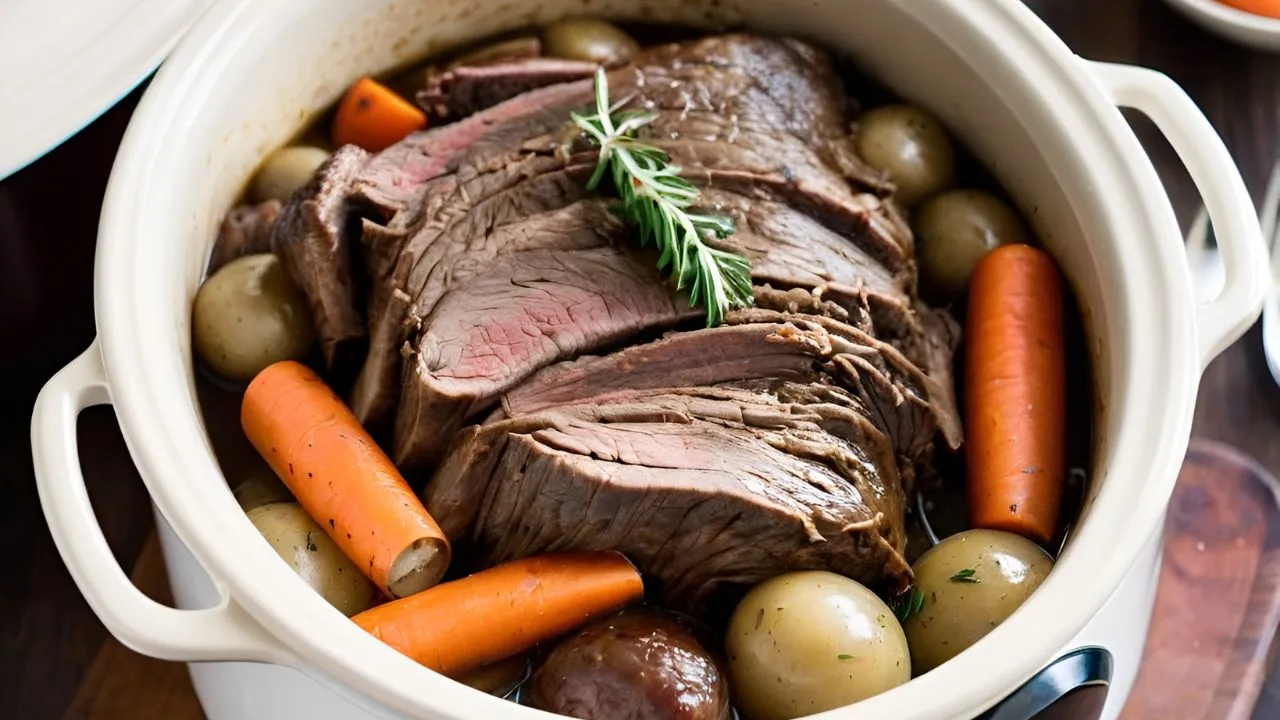 La mijoteuse à rôti fait référence à une méthode de cuisson et à un plat qui consiste à cuire une coupe de bœuf dure, généralement un rôti de paleron, dans une mijoteuse, également connue sous le nom de mijoteuse. Le processus consiste à saisir la viande pour ajouter de la saveur, puis à la placer dans la mijoteuse avec des légumes, comme les carottes, les pommes de terre et les oignons, et à la faire cuire lentement pendant plusieurs heures.