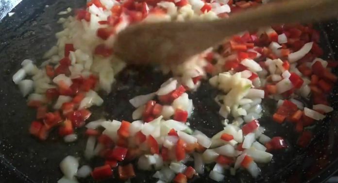 Au bout de 2 minutes ajoutez le poivron rouge et faites-le cuire 5 minutes;