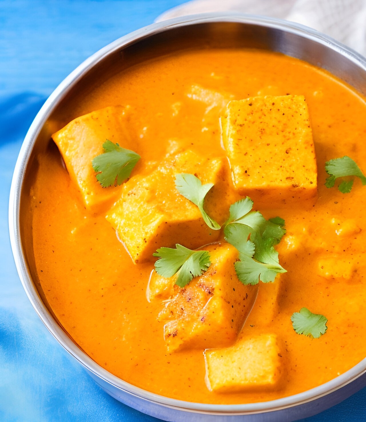 Paneer Butter Masala est un plat végétarien indien populaire composé de paneer (fromage cottage indien) cuit dans une sauce riche et crémeuse à base de tomates. Il est connu pour ses saveurs délicieuses et réconfortantes et est un aliment de base de la cuisine indienne, en particulier de la cuisine du nord de l’Inde et du Pendjab.
