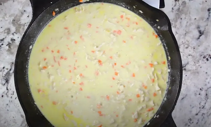- Vous pouvez maintenant verser 1 tasse de bouillon de poulet à faible teneur en sodium et une demi-tasse de crème épaisse.