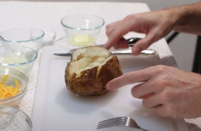 - D’accord et cela laissera la vapeur s’échapper de la pomme de terre au four pendant la cuisson.