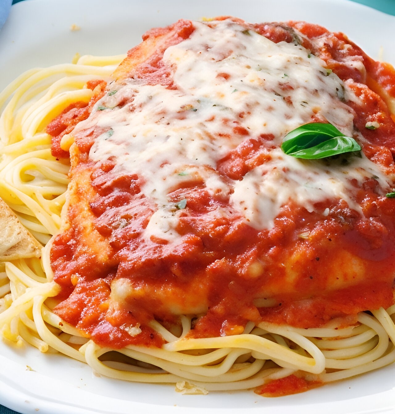 Le poulet Parmigiana, également connu sous le nom de poulet parmesan ou simplement « poulet parmesan », est un plat italo-américain populaire composé d’escalopes de poulet panées et frites garnies de sauce tomate et de fromage fondu.