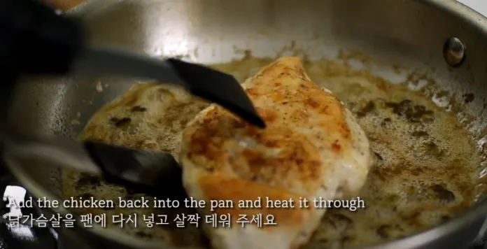 - Remettez le poulet dans la poêle et faites-le chauffer;
