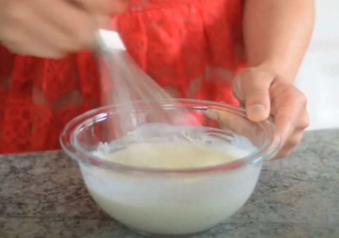 - Et maintenant, pour la sauce, prenez votre babeurre, votre mayonnaise, votre crème sure et votre moutarde de Dijon, et fouettez-les dans un bol;
