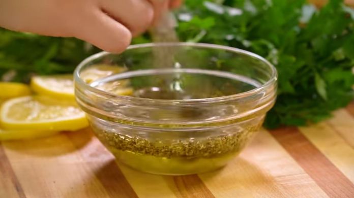 - Dans un bol, ajouter 2 cuillères à soupe d’huile d’olive extra vierge;