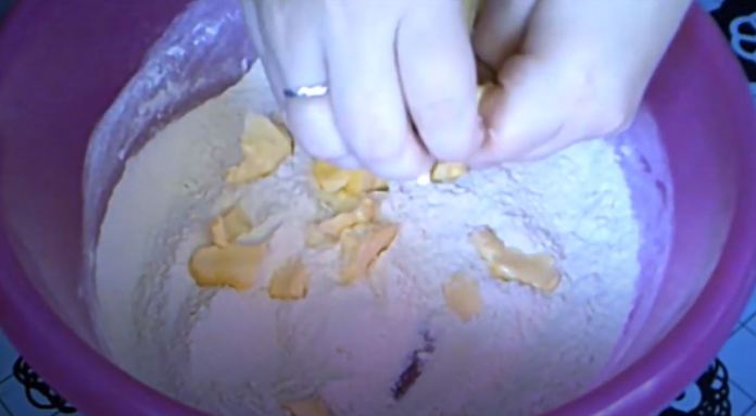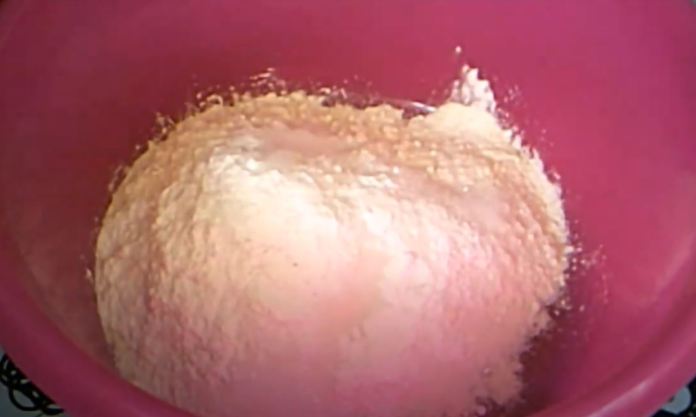 - Ensuite, sur une plaque à pâtisserie tapissée, ajoutez un saupoudrage de farine et appuyez dessus la pâte, en ajoutant un peu de farine sur le dessus.