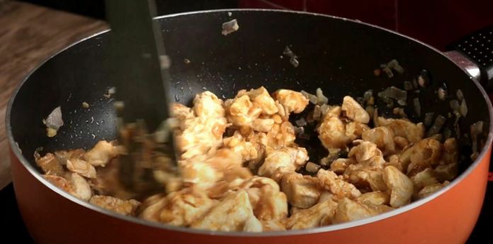 - Puis couper en petits morceaux 500 gr de blanc de poulet