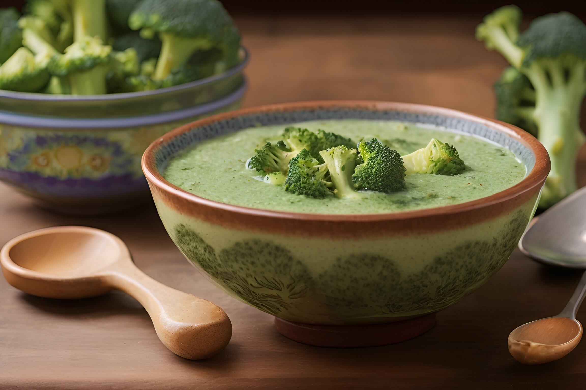 La soupe au brocoli est un type de soupe composée principalement de brocoli comme ingrédient principal. Il s’agit d’une soupe crémeuse et savoureuse qui comprend généralement d’autres ingrédients comme des oignons, de l’ail, un bouillon de légumes et divers assaisonnements.