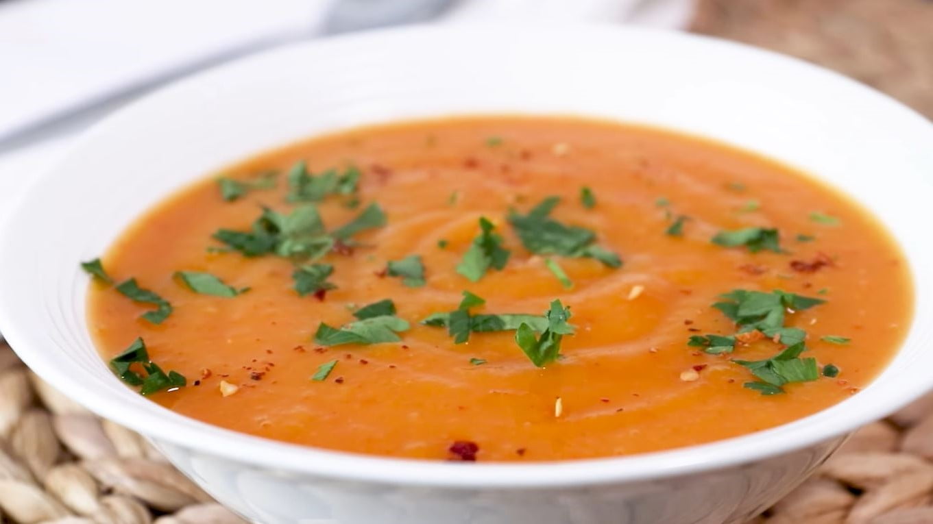 Pour encore plus de piquant, saupoudrez de quelques flocons de piment séché. - Voilà, voilà comment faire une soupe de courge musquée délicieusement épicée !