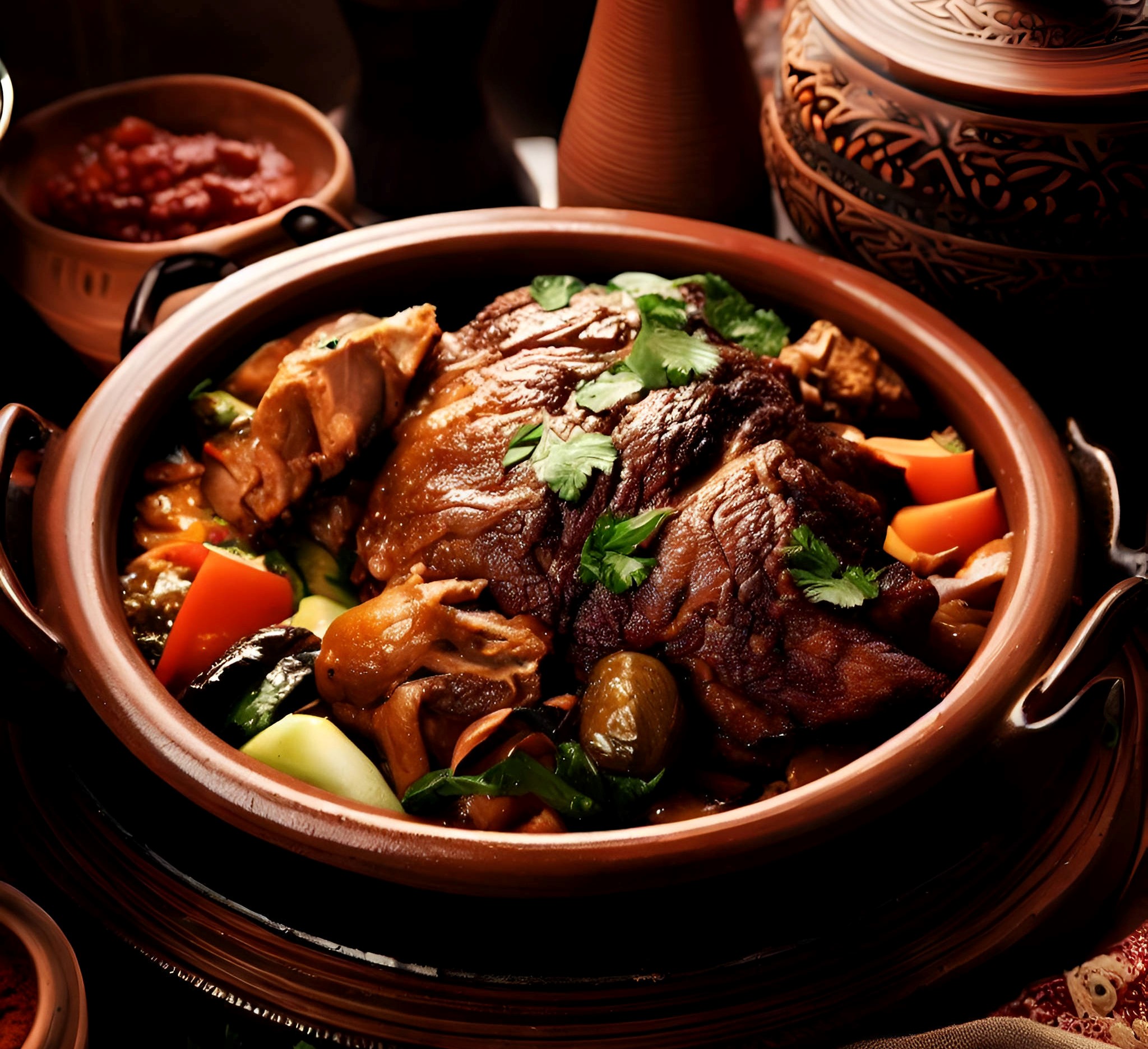 Il a gagné en popularité dans le monde entier en raison de ses saveurs distinctives et de sa présentation unique dans le pot à tajine.